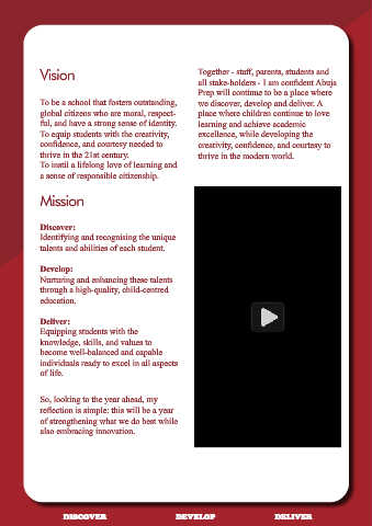 HEAD OF SCHOOL To be a school that fosters outstanding, we discover, develop and deliver. A