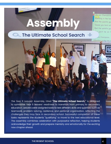 The Year 6 Leavers’ Assembly, titled  "The Ultimate School Search," is designed