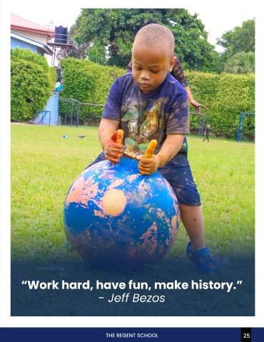 Click Here To Watch The VIDEO from the Early Years Messy Day 2025. “Work hard, have fun, make history.” - Jeff Bezos THE REGENT SCHOOL 24 THE REGENT SCHOOL 25 24