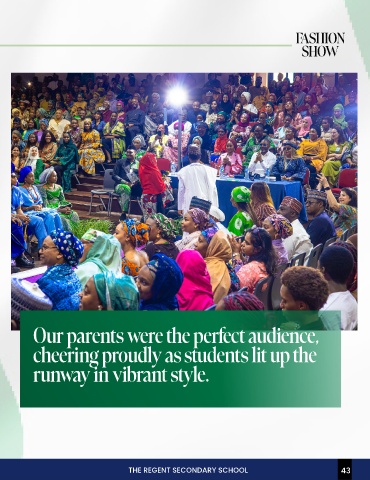 FASHION SHOW Our parents were the perfect audience, cheering proudly as students lit up the runway in vibrant style. THE REGENT SECONDARY SCHOOL 43