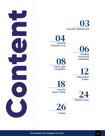 Content 03 From The Editorial Desk 04 From The 06 Principal’s Desk Boarding MasterChef 08 Competition Science Quiz 12 Competition Safeguarding Update 18 From The 24 Regent College Medical Corner 26 Calendar THE REGENT SECONDARY SCHOOL 2 2