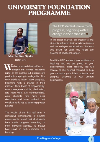 HOD, UFP                                  To all the UFP students, your resilience is