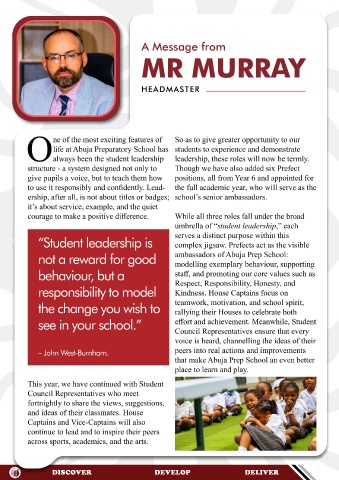 MR MURRAY Develop, and Deliver. Through these opportunities, pupils discover their