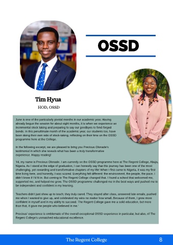 ‘Hi, my name is Precious Olonade. I am currently on the OSSD programme here at The Regent College, Abuja,
