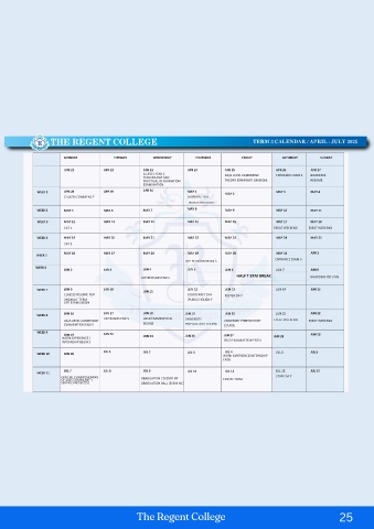 THE REGENT COLLEGE TERM 3 CALENDAR / APRIL - JULY 2025