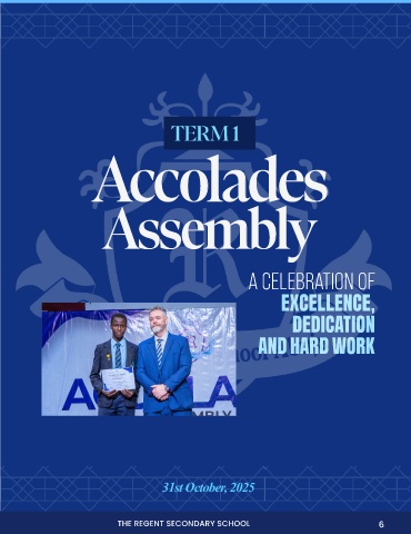 TERM 1 c co la d Accolades A es m y bl s As e Assembly A CELEBRATION OF EXCELLENCE, DEDICATION AND HARD WORK 31st October, 2025 THE REGENT SECONDARY SCHOOL 6 6