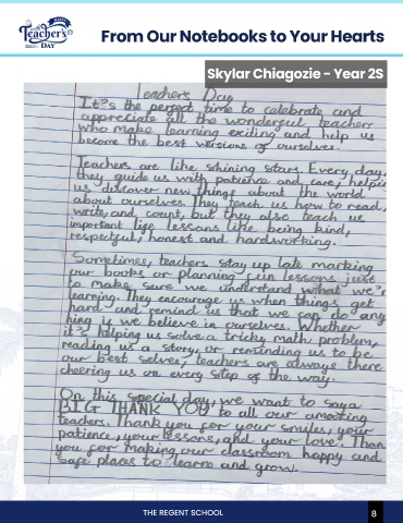 From Our Notebooks to Your Hearts Skylar Chiagozie - Year 2S Petra Maduka - Year 3A THE REGENT SCHOOL 8 8 THE REGENT SCHOOL 9