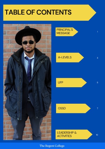 TABLE OF CONTENTS PRINCIPAL’S MESSAGE 1 A-LEVELS 3 UFP 5 OSSD 7 LEADERSHIP & ACTIVITIES 10 The Regent College