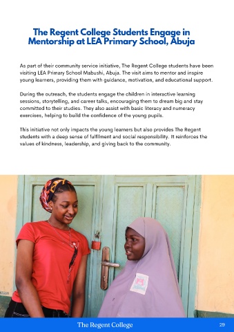 visiting LEA Primary School Mabushi, Abuja. The visit aims to mentor and inspire