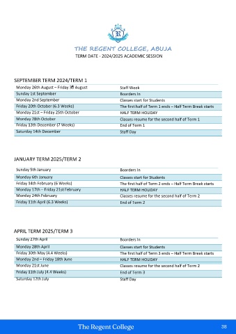 TERM DATE - 2024/2025 ACADEMIC SESSION