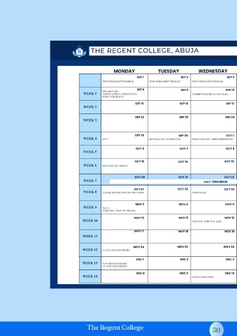 WEEK 8   CLASSES RESUME FOR 2ND HALF TERM             OPEN HOUSE