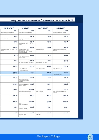 2025/2026 TERM 1 CALENDAR / SEPTEMBER - DECEMBER 2025