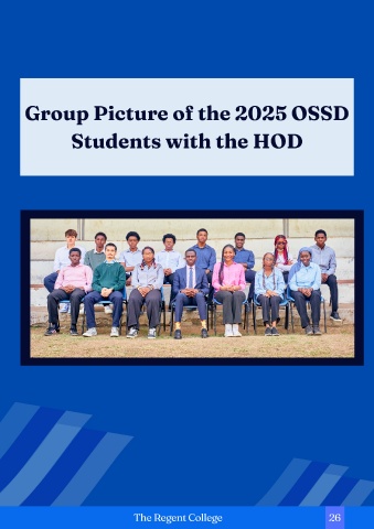 Group Picture of the 2025 OSSD Students with the HOD The Regent College 1926