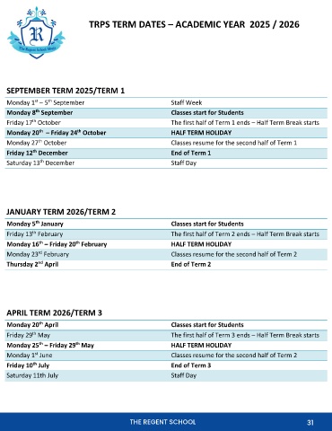 TRPS TERM DATES – ACADEMIC YEAR 2025 / 2026