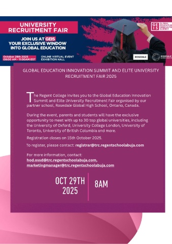 To register, please contact: registrar@trc.regentschoolabuja.com