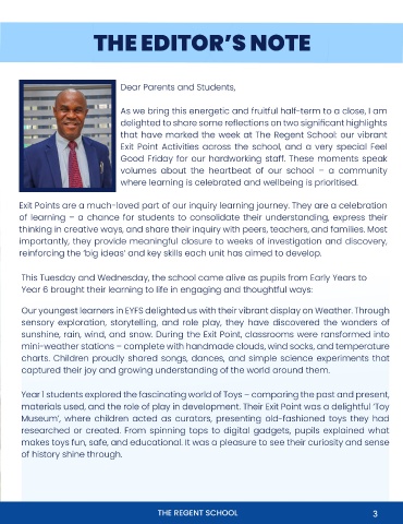 THE EDITOR’S NOTE Headmaster’s 12 03 delighted to share some reflections on two significant highlights