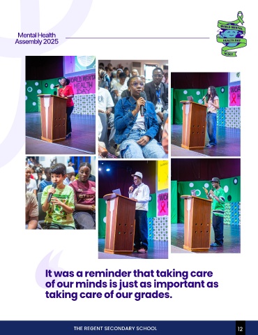 Mental Health Assembly 2025 It was a reminder that taking care of our minds is just as important as taking care of our grades. THE REGENT SECONDARY SCHOOL 12 12
