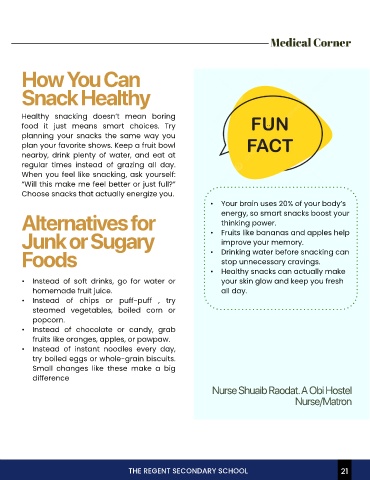 •  Instead  of  soft drinks, go  for  water  or                   your skin glow and keep you fresh