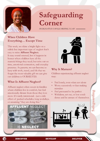 Affluent neglect often occurs in families • Worry excessively or fear making Safeguarding is everyone’s responsibility. Together, we can ensure that every child