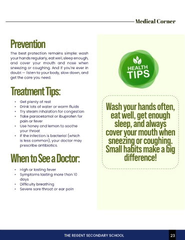 •  Drink lots of water or warm fluids                       Wash your hands often,
