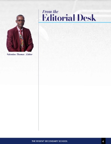 From the Editorial Desk Valentine Thomas | Editor THE REGENT SECONDARY SCHOOL 4 4