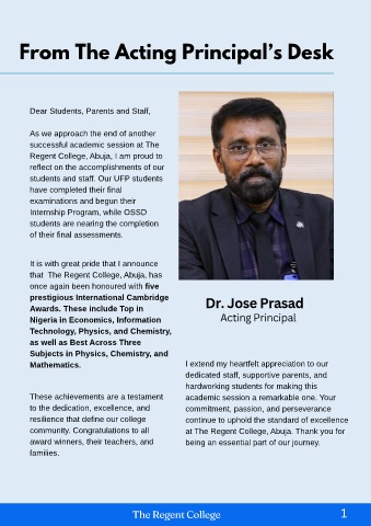 community. Congratulations to all at The Regent College, Abuja. Thank you for