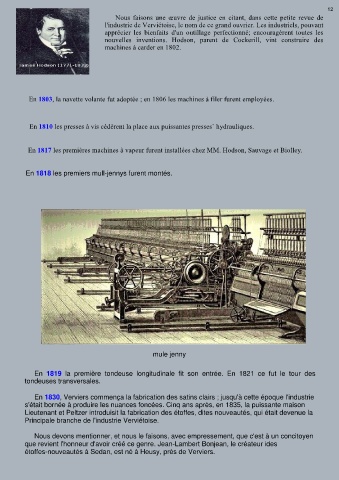 En 1 803, la navette volante fut adoptée ; en 1806 les machines à filer furent employées.
