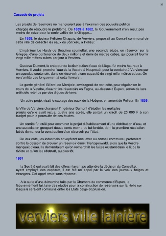 la Ville de Verviers chargeait l’ingénieur Dumont d’étudier les multiples