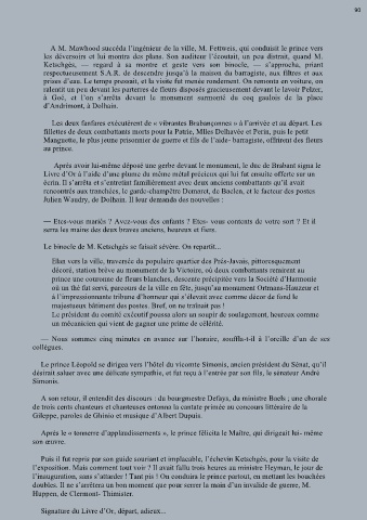 A son retour, il entendit des discours : du bourgmestre Defays, du ministre Baels ; une chorale