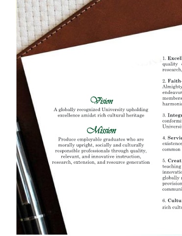 excellence amidst rich cultural heritage 3. Integrity—IFSU’s adherence to moral and ethical values;