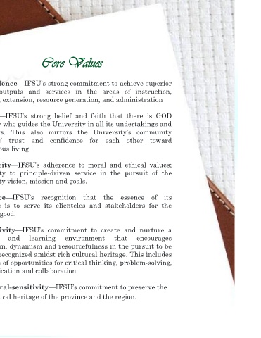 excellence amidst rich cultural heritage 3. Integrity—IFSU’s adherence to moral and ethical values;