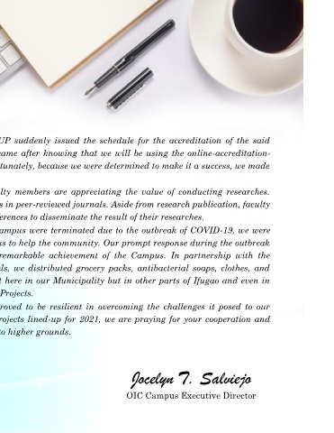 institution. With the many developments and projects lined-up for 2021, we are praying for your cooperation and