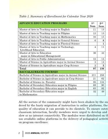 Table 1. Summary of Enrollment for Calendar Year 2020
