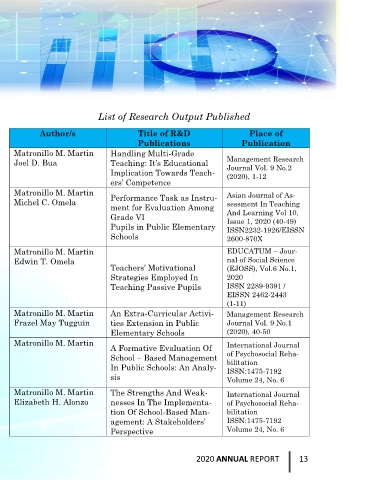 to the community. Matronillo M. Martin An Extra-Curricular Activi- Management Research