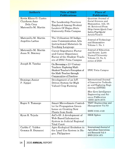 Author/s Title of R&D Place of Dr. Lorna C. Ildefonso also submitted her research-