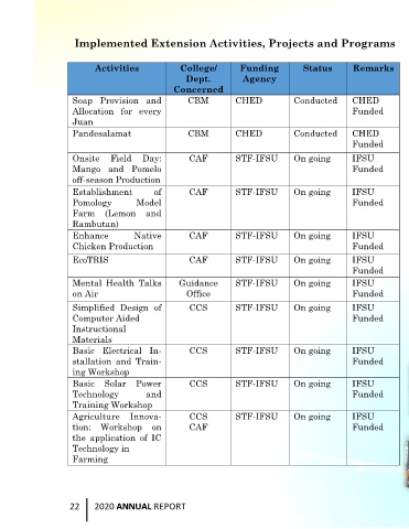 Implemented Extension Activities, Projects and Programs Terminated Extension Activities, Projects and