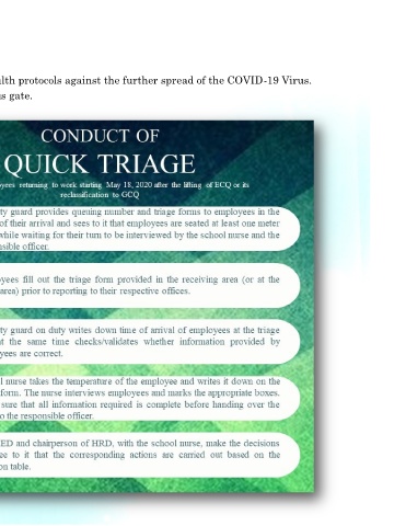 The Campus strictly implemented and observed the basic health protocols against the further spread of the COVID-19 Virus.