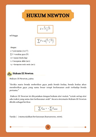 ada reaksi yang sama dan berlawanan arah”. Secara sistematis Hukum III Newton