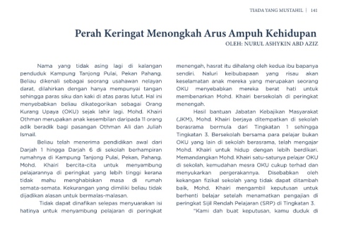 rumahnya di Kampung Tanjong Pulai, Pekan, Pahang. Memandangkan Mohd. Khairi satu-satunya pelajar OKU