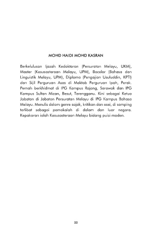 Kepakaran ialah Kesusasteraan Melayu bidang puisi moden.