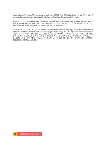 Zaim, N. H. (2020). Statistik Kes Penderaan Kanak-Kanak di Malaysia: satu analisis. August. https://