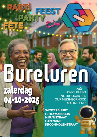 PARTİ FÊTE FEEST بزح PARTY zaterdag 04-10-2025 انّيح ONZE BUURT NOTRE QUARTIER OUR NEIGHBORHOOD MAHALLEMİZ WESTERBUURT H. HEYMANPLEIN NIEUWSTRAAT HAZEWIND KROONMOLENSTRAAT ...