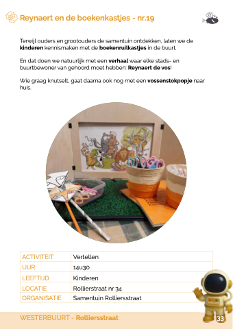 Terwijl ouders en grootouders de samentuin ontdekken, laten we de kinderen kennismaken met de boekenruilkastjes in de buurt.