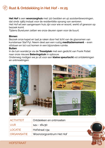Het Hof is een woonzorghuis met 120 bedden en 42 assistentiewoningen, dat sinds 1983 instaat voor de residentiële opvang van senioren.