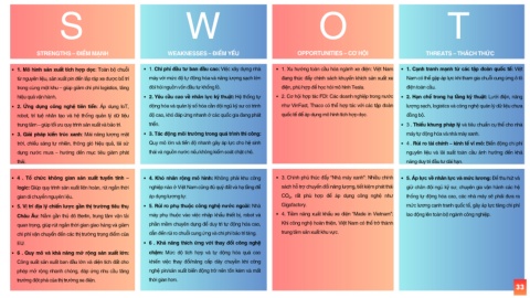 1. Mô hình sản xuất tích hợp dọc: Toàn bộ chuỗi 1. Chi phí đầu tư ban đầu cao: Việc xây dựng nhà 1. Xu hướng toàn cầu hóa ngành xe điện: Việt Nam 1. Cạnh tranh mạnh từ các tập đoàn quốc tế: Việt