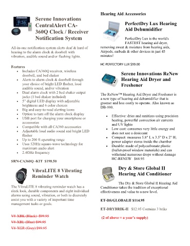 • Alerts to alarm clock & doorbell through Hearing Aid Dryer and