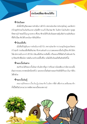 สมาชิกจะได้รับดอกเบี้ยเงินฝากในอัตราทสูงกว่าหรืออย่างน้อยเทยบเทาอัตราดอกเบี้ย
