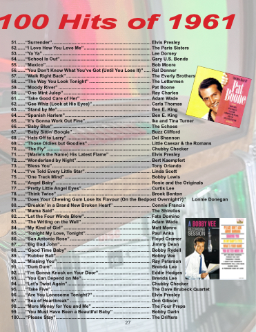 88.......“Good Time Baby” ................................................................. Bobby Rydell 89.......“Rubber Ball”.......................................................................... Bobby Vee 90.......“Missing You” ......................................................................... Ray Peterson