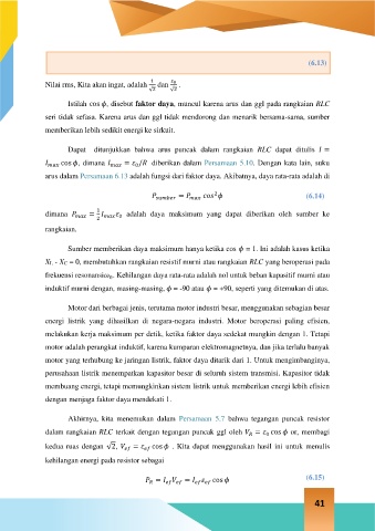 arus dalam Persamaan 6.13 adalah fungsi dari faktor daya. Akibatnya, daya rata-rata adalah di