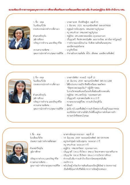 ตําแหนงปจจุบัน : ครูผูชวย กศน.เขตบึงกุม กรุงเทพมหานคร